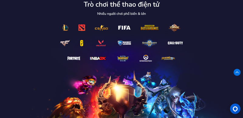 Esport BK8 là một trong những sảnh cược được yêu thích nhất hiện nay trên nền tảng BK8. Với sự phát triển mạnh mẽ của thể thao điện tử toàn cầu như Liên Minh Huyền Thoại, Dota 2, PUBG, FiFa Online hay Valorant, nhu cầu đặt cược Esport ngày càng tăng cao.